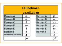 Zurzeit sind 248 Teilnehmer gemeldet. Der Meldeschluss ist in 5 Tagen, am 27.08.2020. Die Onlineanmeldung schließt pünktlich um 00:00 Uhr am Donnerstagabend.