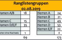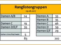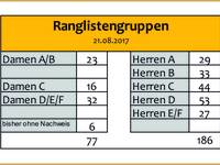 Hier findet ihr die Übersicht der Teilnehmeranzahl den Ranglistengruppen zugeordnet.