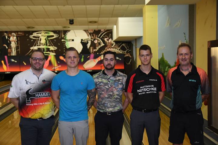 Bei den Herren gab es, aufgrund der höheren Teilnehmerzahl, fünf Ranglistengruppen. Sieger in der EF-Gruppe wurde Klaus Jentsch, er geht in die erste Begegnung im Stepladder gegen Timo Büchner, den Sieger der D-Gruppe. Der Gewinner dieser Partie trifft auf den Sieger der C-Gruppe, Christoph Gottlöber. In der nächsten Runde warten dann bereits Lars Pöhler, Sieger der B-Gruppe, auf den Gewinner des Vorrundenmatch. Für den Sieger des Halbfinales geht es dann gegen Oliver Morig, der sich hauchdünn (6 Pins nach 12 Spielen) den Sieg der Gruppe A holen konnte.